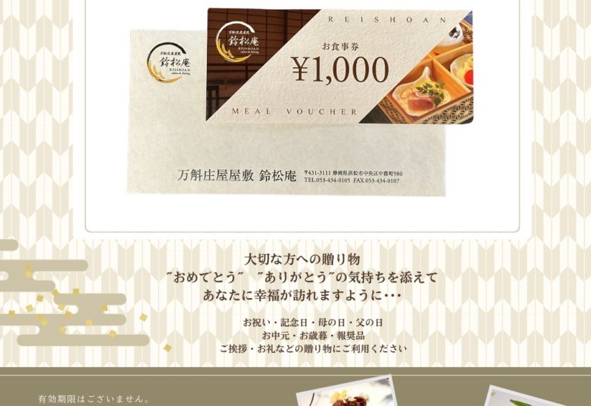 古民家レストラン、万斛庄屋屋敷 鈴松庵です。 この度、以前からお客様より ご要望のありましたお食事券を 発行することとなりました。 こちらの券は、有効期間がなく お中元・お歳暮(個人・企業様)にも ご利用いただけます。...