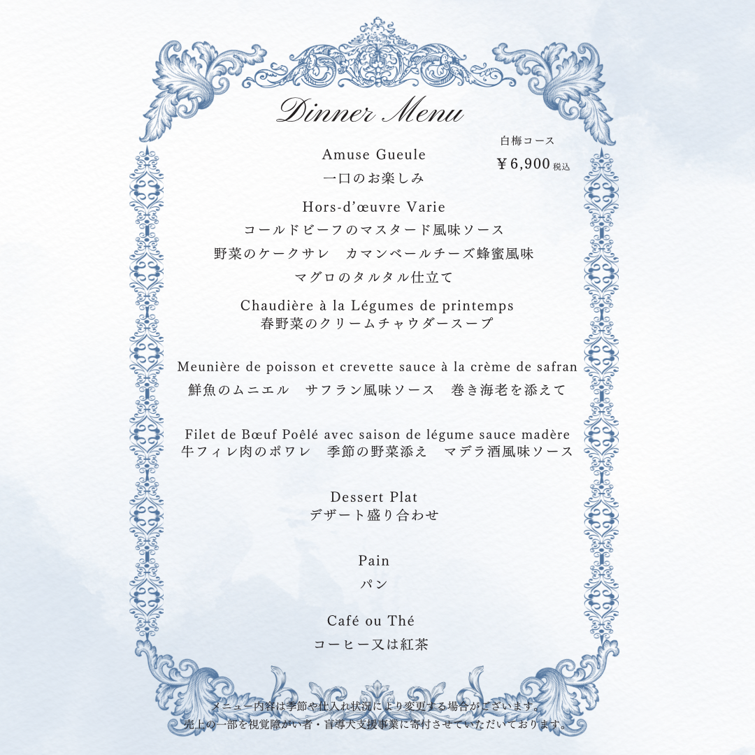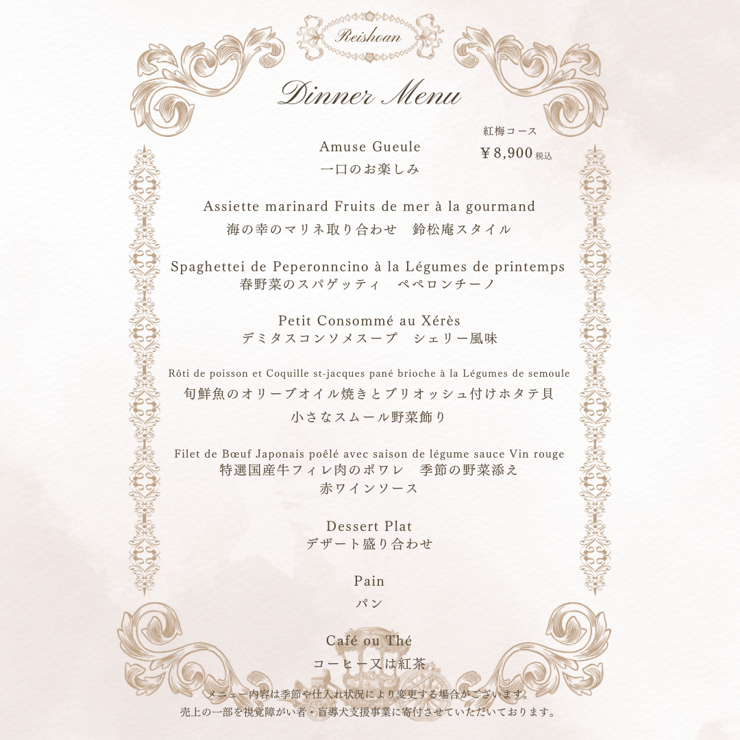 ❃︎ディナーは、完全予約制となっております。ご利用希望日の3日前までにご連絡下さい。よろしくお願いします。