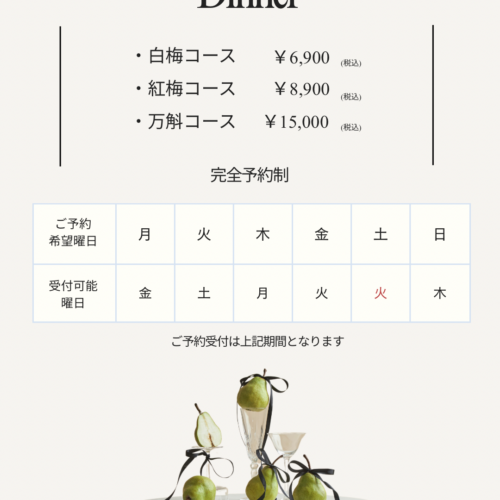 ディナーコースのご案内