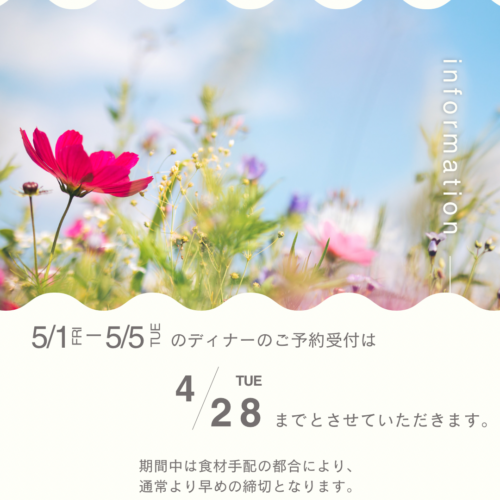 GW ディナーのご予約受付のご案内