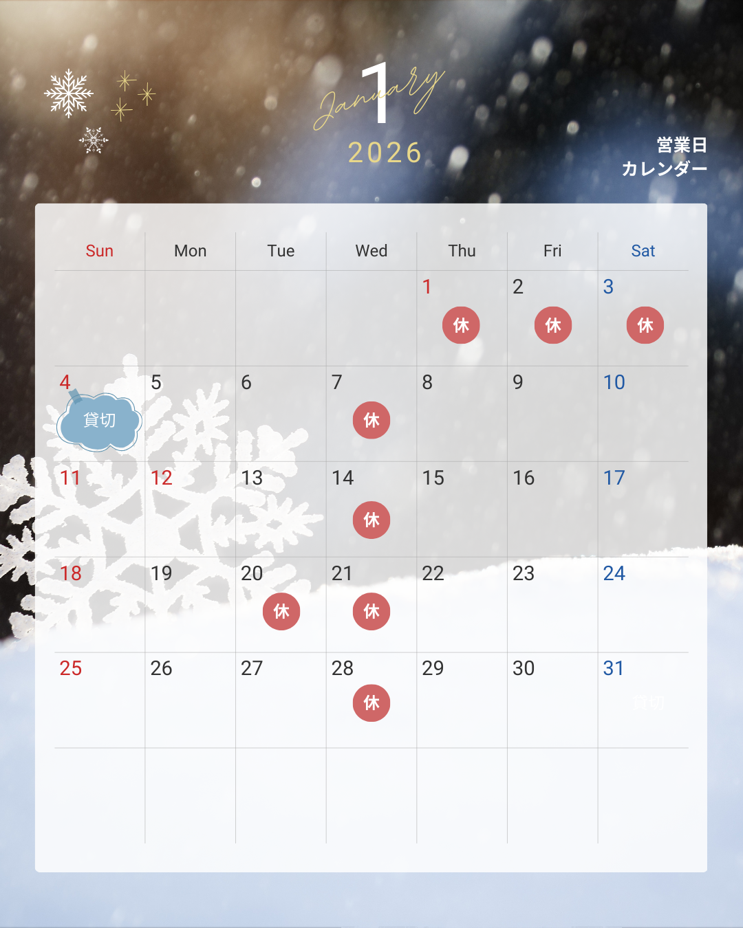 1月営業カレンダー