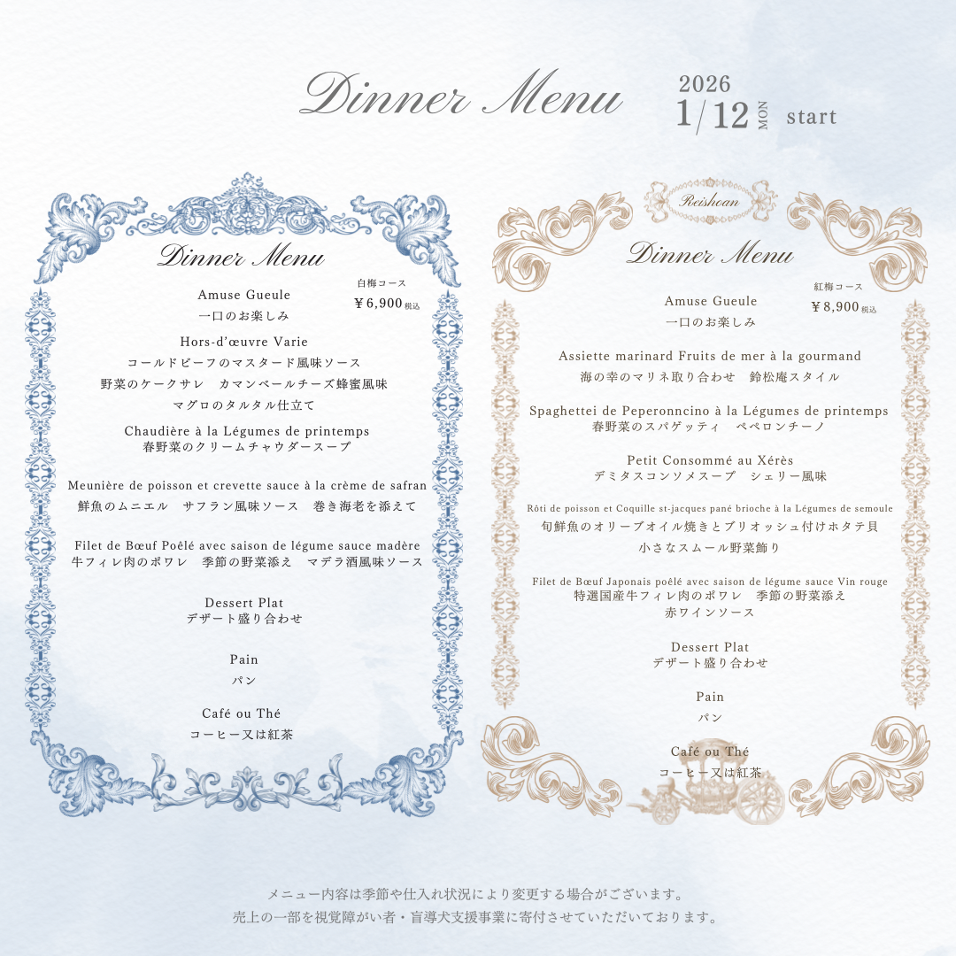 紅梅コースは、選りすぐりの食材を用い、より華やかで特別感のある内容となっております。