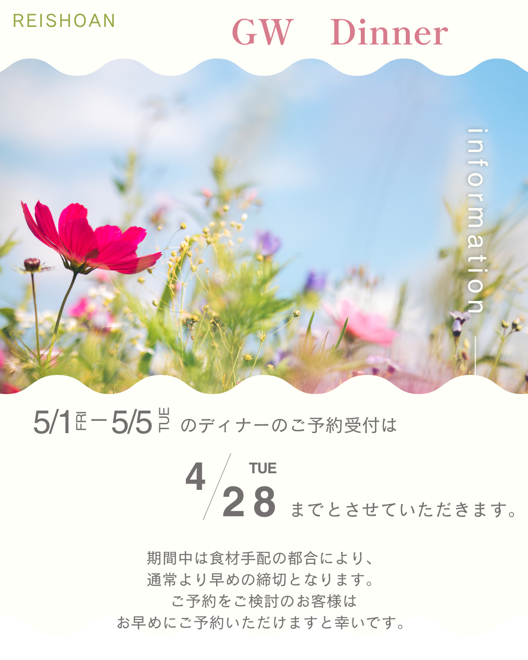 【ゴールデンウィーク期間中 ディナーご予約受付のご案内】